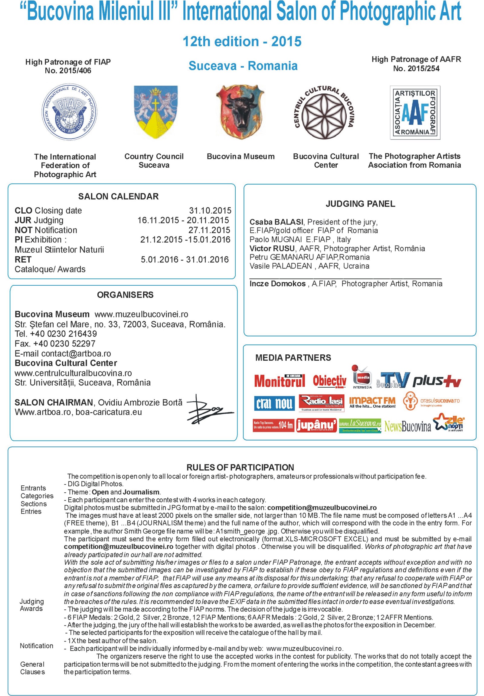 We invite you to participate at the “Bucovina Mileniul III” International Salon of Photographic Art, 12th, edition, 2015.