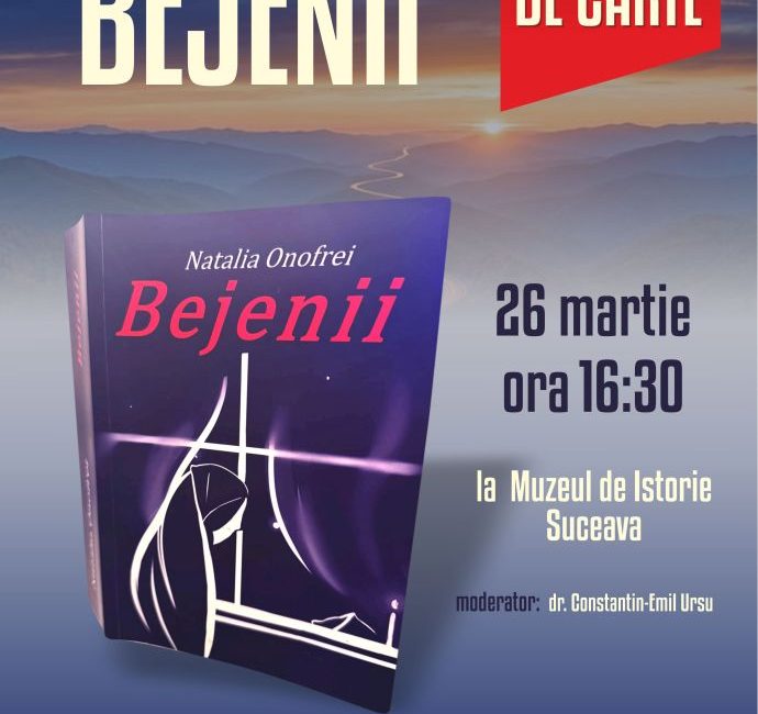 Muzeul Național al Bucovinei, Universitatea „Ștefan cel Mare” din Suceava și Biblioteca „I.G. Sbiera” vă invită joi, 26 martie 2026, ora 16:30, la Muzeul de Istorie din Suceava, la lansarea cărții Bejenii, semnată de scriitoarea Natalia Onofrei.