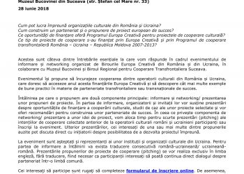 În data de 28 iunie va avea loc la Suceava un eveniment de informare și networking pentru accesarea... Read More → Cooperarea culturala România – Ucraina. De la idei de proiect la parteneriate de succes